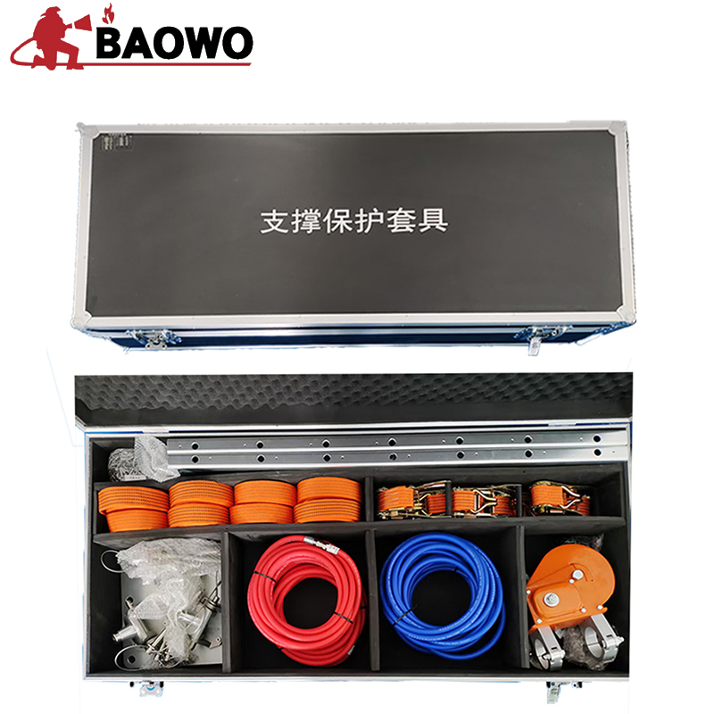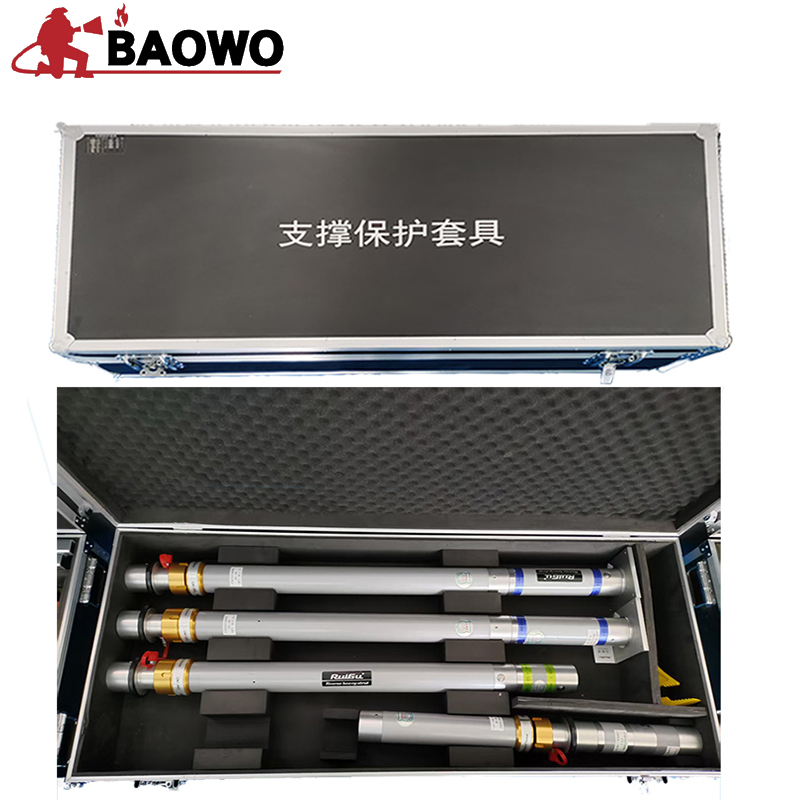 产品简介:产品名称:支撑保护套具型号:BW-TJ181、组成结构:整套支撑套具由三种规格支撑杆组成。2、主要应用场景:适用于地震、塌方、坑道、泥石流、滑坡、各种交通事故处理等现场的抢险救援工具。可以单根使用,也可多跟配合使用,还可以把三根顶杆连成三脚架供救援提升或起重使用。