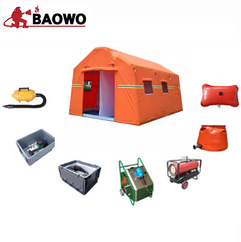 使用场景:对受到有毒物质污染的人体进行喷淋洗消,也可做临时会议室、指挥部、紧急救护场所等。全套面积30㎡。包括:洗消帐篷、电动充排气泵、洗消供水泵、洗消排污泵、洗消水加热器、洗消液均混罐、暖风发生器、喷淋系统、洗消废水回收袋、自升式水袋等,各部件之间采用模块化装配与设计,可以快速的组建整套系统,所有管路配备统一快接接头,可临时相互转换,组建时间不超过10分钟。