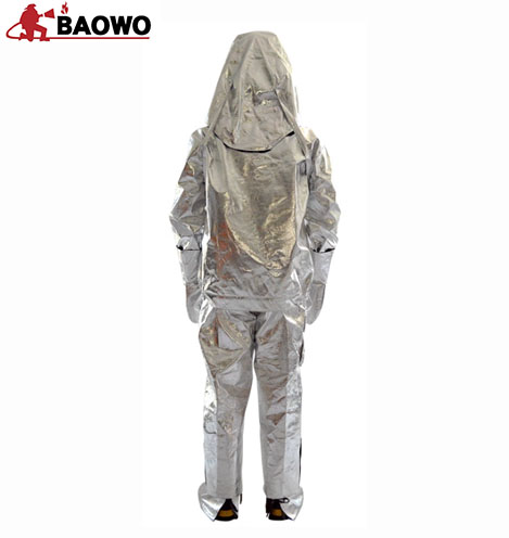 消防员避火服是消防员进入火场内扑救恶性火灾和抢险救援时穿着的防护服装,是消防员特种防护装备之一。该服装具有良好的耐火焰、隔热性能,并具有材质轻、柔软性佳等优点。该服装不仅适用于消防员在火场的火焰区进行灭火战斗和抢险救援,也可适用于玻璃、水泥、陶瓷等行业中的高温抢修时穿着,其用途广泛,具有显著的社会效益。穿着该避火防护服,可抵御1000℃的火焰及热辐射伤害,也能够有效防护高温水蒸汽的喷溅,该产品适合近火源使用,但不适合进入或穿越火源。外覆铝质保护层,全身式防护,服装前部拉链带有保护装置,头罩为镀金(铬)面窗,内置安全头盔,带呼吸器背囊。可以配合正压式呼吸器使用,整体产品采用连体式结构或分体式结构由头罩、上衣、裤子、靴子、手套等防护部件组成。