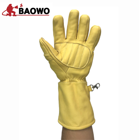 材料组合:采用黄色头层牛皮,内层有隔热层和凯夫拉复合布,皮革厚度:牛皮厚度1.0mm。手背和手指有防撞设计,手掌有加固,凯夫拉螺纹袖口。